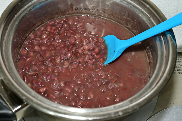 いろいろな作り方がありますが、小豆と同量の砂糖を使うのが一般的ですね。